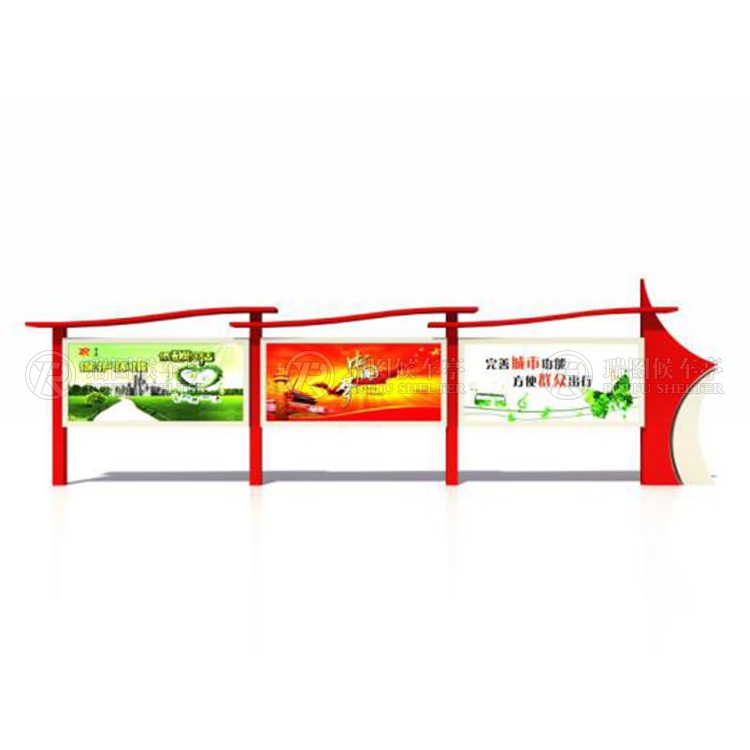 一般采用不銹鋼為框架,鋼化玻璃或者耐力板為面板,鋁合金為頂棚,面板可以打開(kāi)更換宣傳畫(huà)面。
